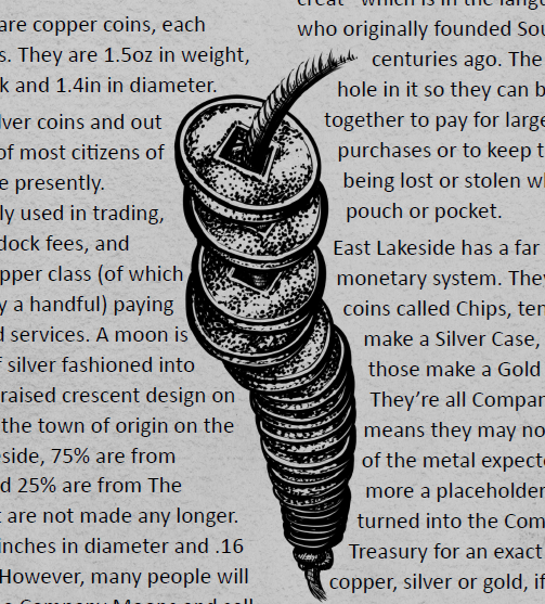 Lakeside Economy: A rundown of the coins to be found in Lakeside and notes on The Company’s own currency.